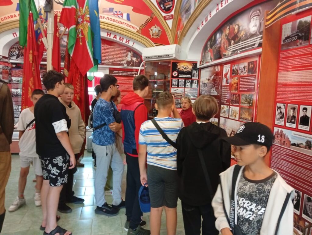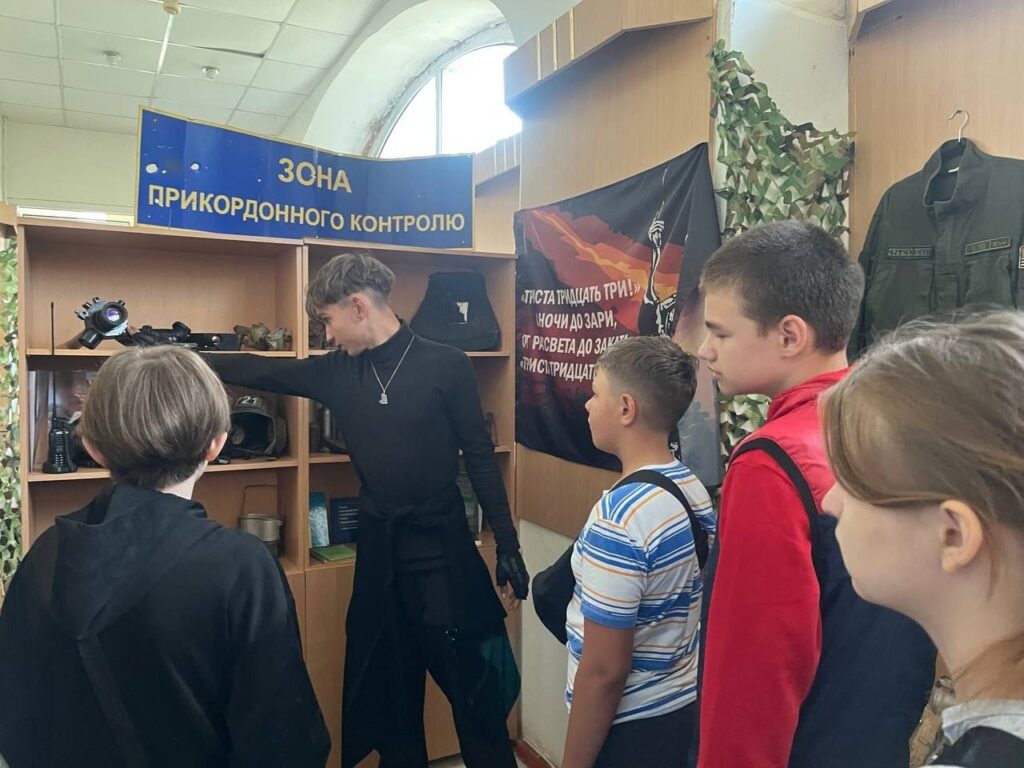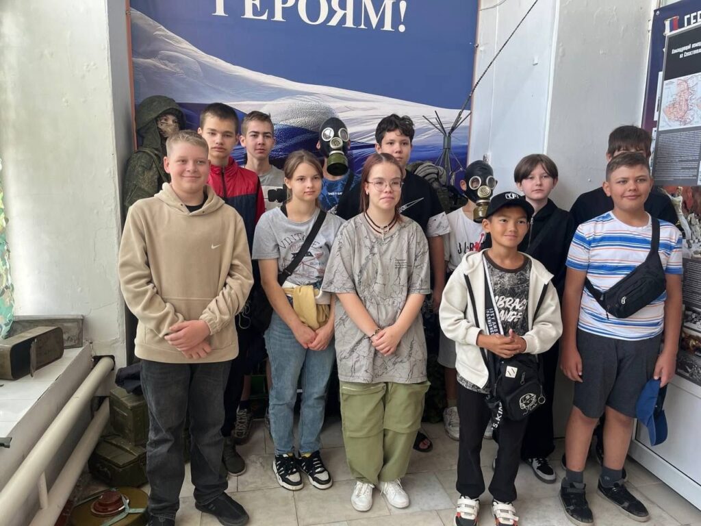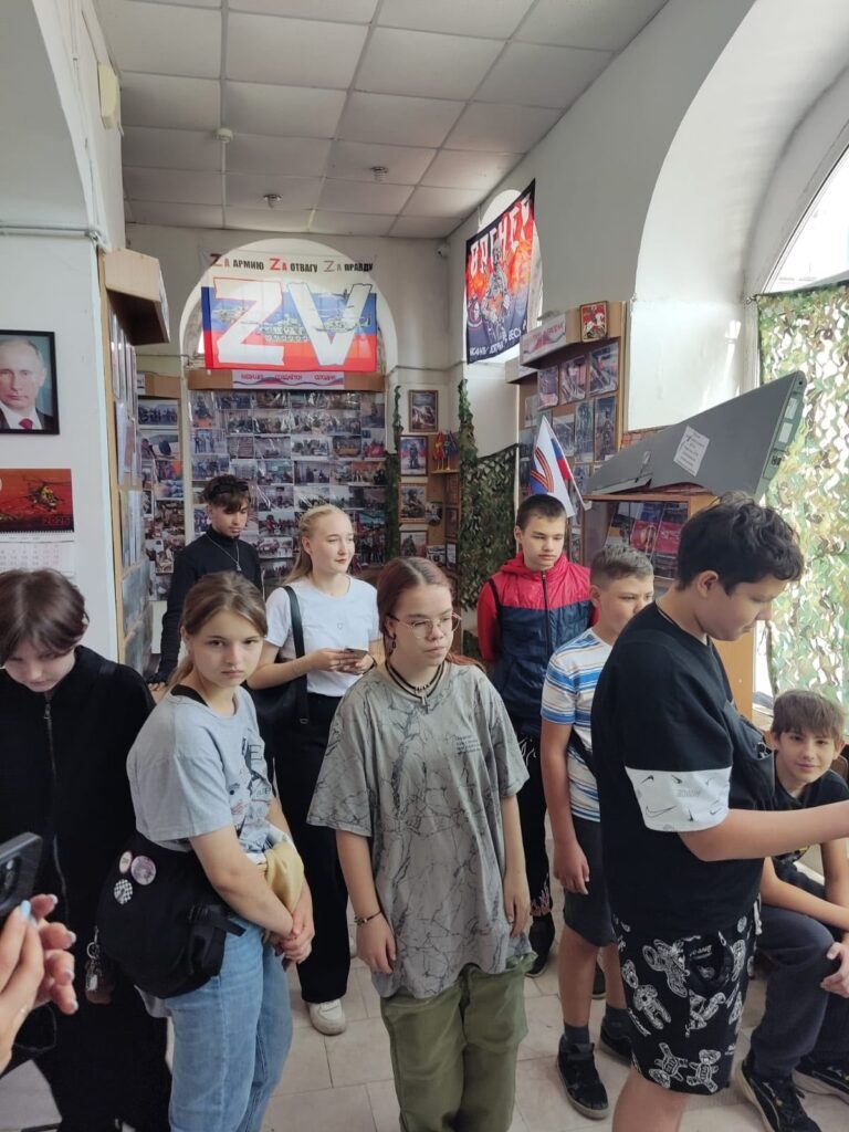 Затем ребята посетили экспозицию, посвященную Специальной военной операции. Экскурсию провел для школьников студент-правоохранитель Иван Белик
