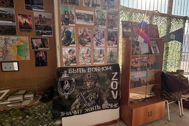 Начинали с 2-3 гильз, шлема и разгрузки. Благодаря нашим воинам, студентам и выпускникам, участвующим в СВО, пограничному управлению ФСБ, гуманитарной группе «Помощь нашим бойцам» Троицка и Челябинска, количество экспонатов и трофеев увеличилось во много раз. А флаг филиала уже неоднократно побывал «за ленточкой».