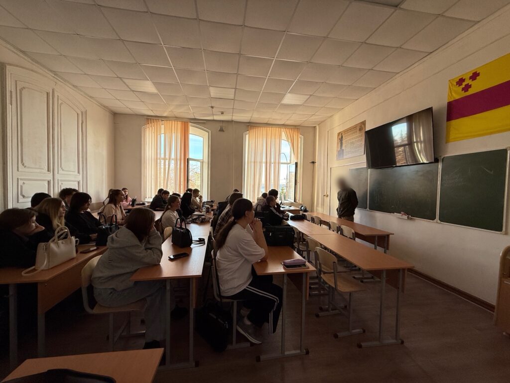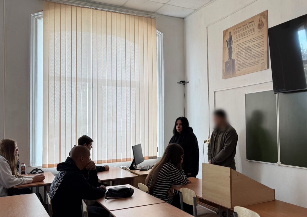 Студенты спрашивали о солдатском быте, о боевых буднях, о специфике работы, что помогает не падать духом. Наш гость вспомнил опасные и весёлые моменты службы, отметил важность волонтёрской помощи.