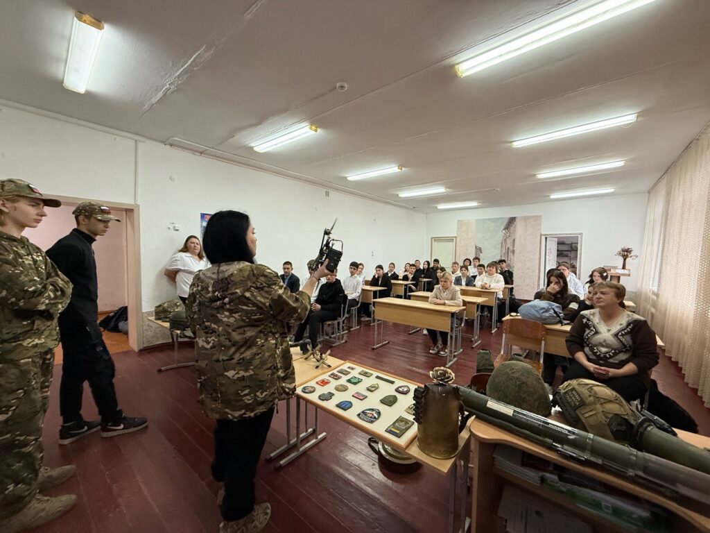 В беседе было отмечено, что экспозиция формировалась из экспонатов, которые были привезены и подарены непосредственно бойцами СВО – нашими студентами бывшими и настоящими, родителями студентов и, конечно же, волонтерами. У каждого экспоната своя история, чья-то жизнь…